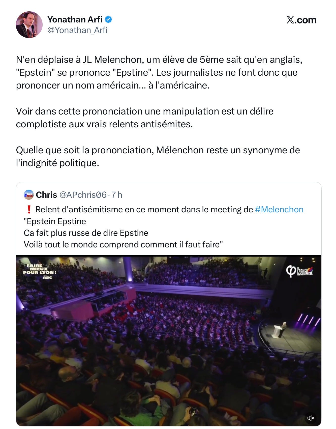 Parce que la manip en question, est celle qui a consisté au premier jour de la publication des documents Epstein à dédouaner la responsabilité du Mossad israélien pour évidemment accuser (sans rire) les Russes d’un complot visant à affaiblir l’Occident. Diversion grotesque qu’entend moquer Mélenchon. Et à l’évidence, cette histoire de prononciation soudain sortie du chapeau, était destinée à construire l’ambiance. Manip grosse comme une baraque à frites, mais que toute la presse mainstream a relayé comme un seul homme.